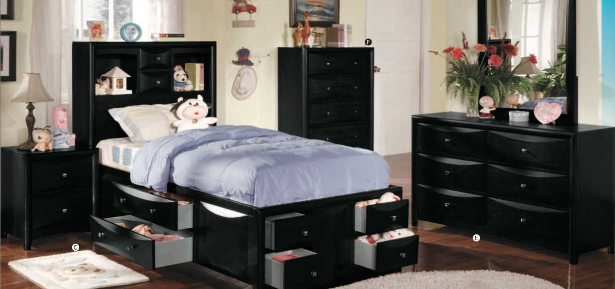 PRICED INCLUDES: Twin Bed w/ Storage, Nightstand, dresser, Mirror